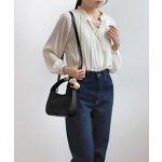 写真とサイズを確認したつもりでしたが、想像してた以上に小ぶりなバッグでした。三つ折り財布とポーチ、ティッシュくらいでパンパンになりそうです。少しチャックが開けづらい。