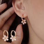 一目惚れです。ピンクゴールドは好きなカラーで、花部分の少しザラっとしたデザインがメチャ気に入りました。主張しすぎない、ちょうど良い大きさの可愛い花です。フープ部分は耳タブが少し厚めなので装着出来るかわからないですが他のフープに付けかえる事も出来るのが何より…花パーツだけでもカラバリ欲しいくらいです。