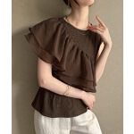 カットソーなので脱ぎ着がしやすく、洗ったあともアイロンの必要がないというところが扱いやすい点です。黒なのですが斜めについたフリルが透けて揺れる素材なので、重たく見えなくて良いです。