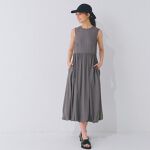 [デザイン]バルーンスカート、素材(全体)撥水(裏地)メッシュが使われており、夏は涼しくて活躍しそうです。そして、シンプルでハイウェストなワンピースなので、上品に見えます。[サイズ]ノースリーブの空き具合が気に入なる方は、お店で試着して頂くと良いかなと思います。また、ノースリーブだけでなく、フレンチスリーブや色のバリエーションがあると色々な方の好みに合うかと思います。