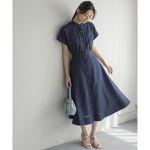 シルエットがとてもきれいです。ボタンは小さくて厚みがあり良いです。品の良いワンピースが欲しかったので満足しています。着丈はわりと長めです。
