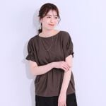 さらさらで涼しく、袖のタックがほどよく目立って上品な印象です。落ち着いた色合いで袖も長めなので秋にも着られそうです。首元が少し緩めです。