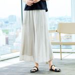 涼しそうな素材ですが、太陽の下ではちょっと透けてしまいそうです。デザインは、オンオフと使えそうで色々なトップスと合わせやすそうです。