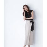 上品な素材感ですがさらりとしていて夏のオフィス服に重宝します!身長159cmの普通体型でMサイズを購入し、パツパツで肉感を拾いすぎるかんじもなく、長さも足首が見えるかんじでちょうどいいです!