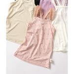 見えても可愛いインナーを探しており、肩紐フリルに一目惚れしてこちらを購入しました。見た目も可愛いですし、機能面も接触冷感になっているので、夏はヘビロテしたいと思います。88cmでインナーなのでジャストの90サイズにしましたが、やや小さめな感じがしました。多少伸縮性はあるので着用には困りませんが、今後のことを考えて100でも良かったかなと思いました。