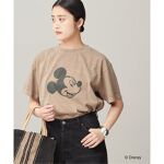 大人かわいいミッキーTシャツ。ワンサイズのみなので、少し大きく感じますが、袖は折り返してボトムにインして着ています。