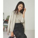 カーディガンの厚みはちょうど良く、長い期間着用できそうです。付属のボタンも良い感じです。