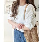 クラシカルエルフで服を購入するときは、普段のサイズよりも1サイズ下げて購入していますが、今回はSが売り切れだったので、思い切ってMを購入してみました。ですが、今回は着丈や肩幅もMでジャストサイズでした!二の腕は太めな方ですが、腕のゴムはそこまで圧迫感なかったです。