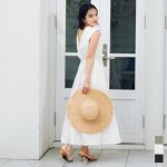 ノースリーブですが肩幅をカバーしていて、ハイウエストでウエストがギャザーなのでメリハリがでてシルエットが綺麗です。