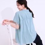 生地も薄手でサラッとして着やすいしボトムスを選ばない。ただ、脇を上げると胸まで見えるので、インナーを選びます。あと、シワになりやすいので注意が必要。