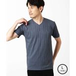 【残りわずか/洗える】3DストライプテレコVネックTシャツの口コミ一覧