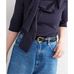 お値段の割にしっかりしていて良い感じです。バックルはイエローが強いお色味でした。ベルトループはないので付いているお洋服に使います。
