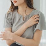 パールは安っぽさが否めませんが、とてもきれいなブラウスです。つるっとした生地ではないのが高見えしていると思います。しっかり目の生地で、透けにくいと思います。
