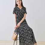 モノトーンの小花柄が、大人可愛い素敵なワンピースです。
