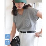 胸元があまり開きすぎていないので仕事用にもちょうど良かったです。158cmで Mでもだらしなく見えずお尻も隠れて長さもちょうど良いが、画像の感じに着ることを考えると袖丈、着丈やデコルテの具合から少しだけ大きいLでもいいかなと思いました。