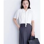 襟元が可愛く、一枚でもスーツのインナーにもできそうです。白と迷いましたが、くすみカラーがこれからの時期に良さそう。サイズはいつも通りで問題ありませんでした。