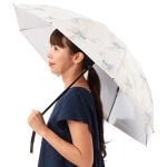 白地にイエローの花と箔プリントのゴールドのデザインがオシャレでかわいいです。傘の骨は6本が一般的ですが、こちらは8本を使用していて丈夫で、それでいて軽くて良い感じです。