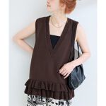 これからの季節にブラウスなどに合わせるのに購入。フリルが裾についているので可愛い。デニムに合わせようと思ってます。サイズも問題なし、生地の特性なのか少しだけ重さを感じたので⭐︎一個マイナスです。