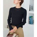 リブニットですが、体の線を拾いにくい程よいフィット感です。柔らかく肌触りのよいニットです。