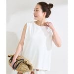 私には丈は少し長めでしたが、INしてきてます。袖の感じも思ったよりすぼまっていて、中も見えにくく、生地もしっかりしているので、白でもほとんど透けません。