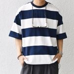 ゆったりサイズで着やすい。太めのボーダーで合わせやすく感じます。コードが付いてて絞って着ることも出来るので、変わった雰囲気を出せるのも魅力の一つです。