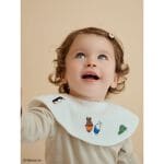 ミッフィー刺繍が可愛く、ふわふわのパイル生地で吸水性が良いです。スナップボタンが2つあるのでサイズ調節ができます。