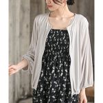 サラッとした生地で羽織り心地がいいです。ゆったりしたサイズ感で着やすいです。真夏では少し暑いですが冷房対策にはいいと思います。