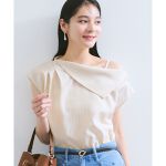 あまり見ないデザインに惹かれて買いました。シワになりにくい素材で、買って良かった!フィット感は普通です。ボートネックなので下着は気を付ける必要があります。