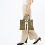 オリーブ色と真ん中のラインが洒落てて 気に入りました。 鞄自体がしっかりした造りの分 少し重く感じます。中にいろいろ入れない方がよいかも。
