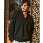 柔らかいニット生地で非常に着やすいです。V型の襟元も特徴的で、カッコいいの一言。