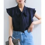 フリル&リボンのフェミニンなデザインですが、色が落ち着いているので甘くなりすぎず、防シワ素材で生地もきちんと感がありキレイめオフィスカジュアルに最適。