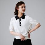 色がお洒落!襟も大きめでデザインもサイズ感も気に入ってますが、生地が少しガサッとしているのがマイナスでした。秋に出た商品なので、もう少し暑さより素材にフォーカスした商品だったらよかったなーと思いました。