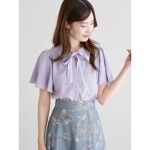 会社用に購入しました。ボウタイをつけてと外して2WAYで使えるのでいいです。ネイビーなので透け感はないですが、色が薄いと透けそうなくらい生地は薄めです。肩幅が気になる骨ナチュですが、フレアスリーブのおかげで気にならなかったです。フレアスリーブも横に広がっていないのでよかった。