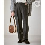 低身長用なので、149センチで丈直し無しでスニーカーに少しかかる感じでした。同じシリーズのジャケットと同じ生地です。ストレートというよりはワイドめな感じで、細くは見えませんが冬でも下にタイツなど履きやすいです。