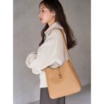 肩に下げて持つと体にフィットするデザイン。マチが小さく、私はいつも大きめのバッグを持つのでどうかな?と思いましたが、意外に大容量!長財布も私の大きめスマホも余裕で入ります。ちょっと幅広の持ち手がいいですね。肩にかけた時の負担も少なそうです。