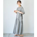 ブラウンにブラックの組み合わせが、大人可愛いです。横のリボンで微調整ができるので体型に合わせて着られそうです。生地は薄めでサラサラしてるので、暑いには涼しく着れました。