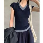 配色Vネック ノースリーブニットトップスの口コミ一覧