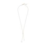 手持ちの服に合わせやすいデザインです。パールの粒が10ミリぐらいあるので存在感があり、シンプルなコーディネートの良いアクセントになります。チェーンが長いので、フックはあるけれど外さなくても着脱できるのは便利です。