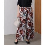ウエストゴムなので楽です。模様も大好きで、少しくすみカラーなのが秋らしくて、上も合わせやすく、とても気に入っています。