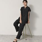 さらっとした生地でブラウンも落ち着いた色でした。子供が小さいので、会社に行けて綺麗目な服を探しており、ちょうど良かったです。セットアップで着るとすこしだぼついてしまったので星を一つ減らしました。