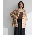 見た目秋冬に着るチェックみたいなんだけど、生地は夏のシアーみたいな薄さではないです