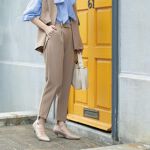 ジレとセットアップで購入しました。165cm 下半身太めですが、Lでちょうど良かったです。動きやすく仕事服にちょうど良さそうです。