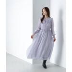 ラベンダーのMを購入しました。丈は、長めで154センチで踝くらいまであります。シャーリングのデザインが素敵です。袖が透ける素材なので、今の時季は1枚では着られませんが、ジャケットやカーディガンと合わせて着用したいです。