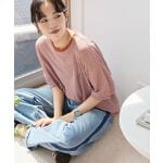 さらっとした素材で、オーバーサイズですが軽くて着やすいです。ボトムスにインしても、腰回りがすっきりします。ブラウン系だけでなく水色も入ったボーダーなので、デニムとかカジュアル系の服に合うなーと思います。