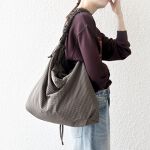荷物がかなりの容量で入るので良いです。コットン素材なのであたりが良く、斜め掛けしても肩が痛くならないのはポイント高いのですが、ちょっと長くだらんとしてしまうのが難点で肩ひも調節出来たら尚良いです。