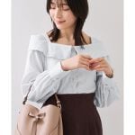 形はとても可愛いですが、やっぱり肩周りが結構あいているのでオフィスに着ていくのは難しそうです。シャツ自体は伸びなくしっかりとした生地です。