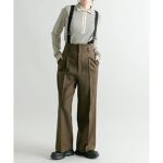 パンツの形は足が長く見えて満足。ただサスペンダーが、ペラペラな感じで少し残念。色も良いし全体的には満足です。