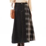 5.4OZ布帛デニム+左脇T/Rツイルチェック柄プリーツドッキングスカートの口コミ一覧