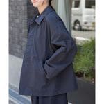 少しシャリ感がある軽い生地で気軽に羽織れる感じです。襟部分をスタンドカラーのように閉められる別布がありその着方もかわいいです。