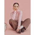 とても綺麗な薄めのピンク色で、肌が明るく見えます。羊毛の比率が高いので、薄手だけどとても暖かいです。